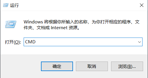 和普通程序安装会多出来快捷图标不同,使用默认安装方式安装后,并不会自动添加快捷图标(虽然也用不上那玩意儿),为了验证是否安装成功,我们按键盘上的 Win键和R键 ,输入 CMD 敲回车
