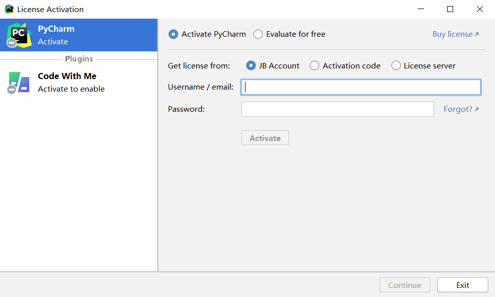 接下来需要激活PyCharm,这里需要登录你的JetBrains账号,这里不多赘述如何注册,请自行百度,需要用到教育邮箱,也请自备一个。