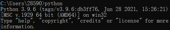 在出现的命令行窗口中,我们输入 python ,敲回车,将会显示当前已安装的python信息,如果报错,那么说明Python未正确安装,请重复以上步骤。