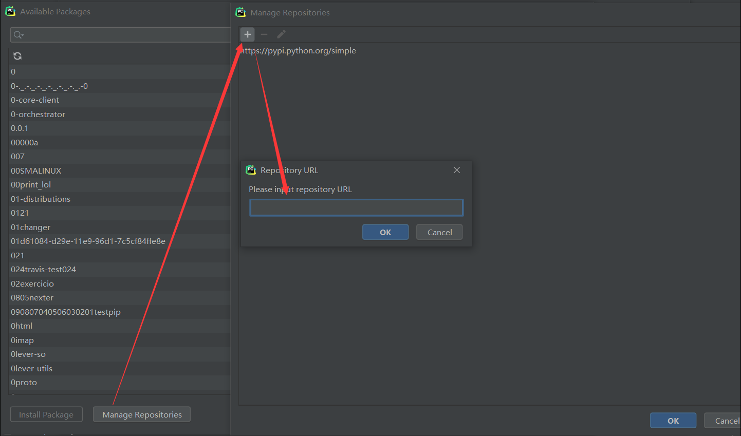 在新出现的窗口中,点击 Manage Repositories ,点击出现的窗口上方的小加号,接着在弹出的窗口中输入这几个链接(一次一条!)https://pypi.tuna.tsinghua.edu.cn/simplehttps://mirrors.aliyun.com/pypi/simple/