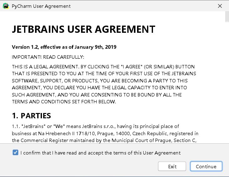 在重启后,我们找到桌面上的PyCharm的图标,双击运行他。点击同意用户协议。